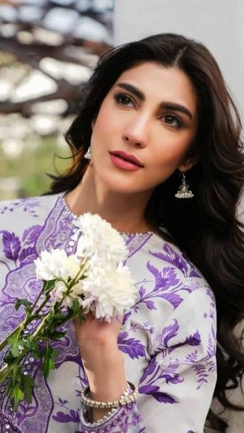 Color Theme: A charming Lilac & White combination with intricate digital floral patterns